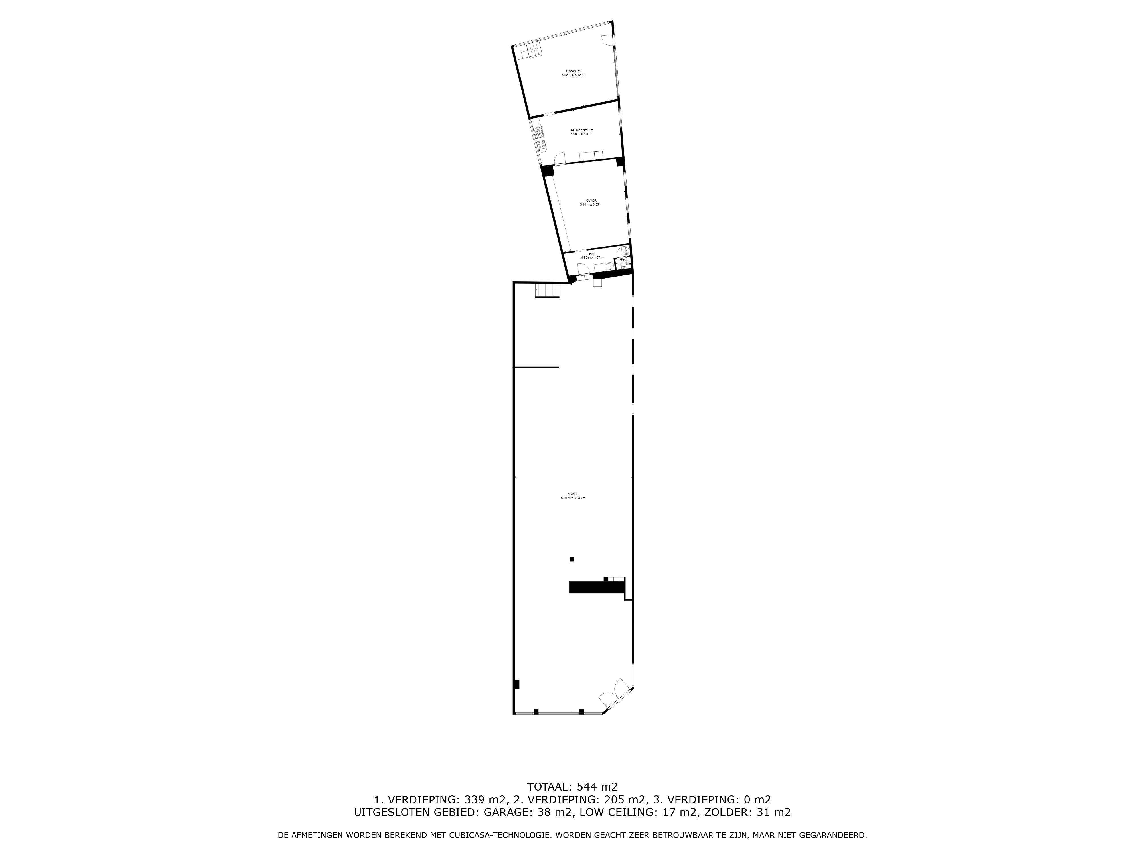 Hier achter vinden we momenteel een kitchenette, toilet, stockageruimte en een grote garage.